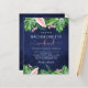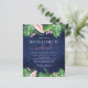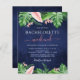 Budget Tropical Palms Floral Flowers Watercolor Navy Blue Bachelorette Weekend Itinerary Invitations - includes beautiful and elegant script typography with modern botanical blush pink flowers and tropical Hawaiian greenery for the special Bride to Be celebration.