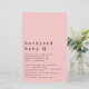 A LARGER size 5.5” x 8.5” at a budget price, on a SEMI GLOSS 110 lb CARD STOCK, great for invitations, at roughly the same thickness as a postcard, or an elegant 110 lb LINEN stock – for a luxury, slightly thinner feel at great value. This budget size alternative is also available in other paper choices. The FELT 100 lbs paper is buff coloured, NOT white, so adds a rustic touch. The MATTE 80lbs paper stock is bright white, for crisp printing, great for your menus and programs, whilst the SATIN 80lbs paper is thin and light, ideal for enclosures. PLEASE NOTE THE OPTIONAL ENVELOPES ARE A LITTLE BIGGER IN SIZE AT 6.75” x 9” approx. Simple Backyard Baby Q BBQ Shower pink Invitation. The occasion header is large in stylish lowercase with the details at the bottom. Easily personalise the text to your own details.