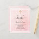 A modern, elegant baptism, celebrating a baby girl. A blush pink background and white frames decorated with small golden sparkles, dots and a golden cross. Personalise and add a name and party details. Black coloured letters.