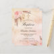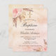 A rose gold, blush pink rustic faux metallic looking background. Decorated with rose gold and pink florals, roses, pampas grass, and a golden cross. Personalise and add a name and the details.