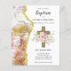 Great quality and value budget Baptism, Christening, First holy communion invitations featuring a holy gold cross. Text template fields both sides to add all your special event details for son or daughter.