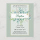 Watercolor green, sage coloured Rucalyptus leaves feature on this double sided Baptism, Christening, First Holy Communion invitation.