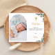 A modern and elegant baptism thank you card. A chic white background decorated with eucalyptus greenery and faux gold leaves. Personalise and add your photo of the child, thank you note and name. Gender neutral. Arch photo frame