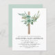 Budget Sage Green Girl's Floral Eucalyptus and Gold Wooden Cross Botanical Greenery Watercolor Christian Religious Baptism Invitations.