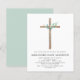 Budget Sage Green Girl's Eucalyptus and Wooden Cross Botanical Greenery Watercolor Christian Religious Baptism Invitations.