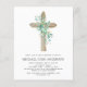 Budget Sage Green Boy's Eucalyptus and Wooden Cross Botanical Greenery Watercolor Christian Religious Baptism Invitations.