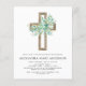 Budget Sage Green Girl's Eucalyptus and Wooden Cross Botanical Greenery Watercolor Christian Religious Baptism Invitations.