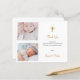 A modern and elegant baptism thank you card. A chic white background decorated with a faux gold cross. Personalise and add your 2 photos of the children, thank you note and name. Gender neutral.
