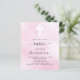 A modern, elegant baptism, celebrating a baby girl. A light pink sky as background, decorated with a white cross. Personalise and add a name and details. Black coloured letters.