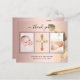 Add 2 or 3 of Your photos, vertical size, a date, name, and the thank you note. A blush, rose gold faux metallic looking background with black text and frame, a golden eucalyptus sprig. The text: Thank you on the front and your name on the back are written with a stylish hand lettered script with swashes.