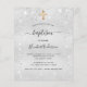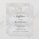 A modern, elegant and minimalist baptism invitation for both boys or girls. Faux silver metallic looking background decorated with faux glitter dust. Personalize and add a name and details. Black colored letters.
