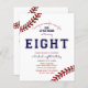 Baseball 8th Birthday Invitation. Batter-up! This festive baseball design is sporty fun for your child's eighth birthday. The design features a baseball background.