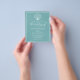 This simple minimal light teal beach budget wedding invitation design has a scallop shell at the top, elegant script calligraphy, and a frame around the edge.