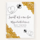 This Sweet as Can Bee baby shower design has watercolor honeycombs and sweet little bumblebees making heart shapes as the fly.