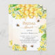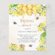 A stylish white and golden watercolored background. Decorated with bumble bees, melting honey and honeycomb with yellow florals, flowers and a honey jar. With the text: Bridal Shower written with a modern hand lettered style script. Personalise and add the name of the bride to bee. Golden and black letters.