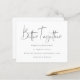 Budget Script Better Together Engagement Announcement. A budget price SMALLER 4.5” x 5.6” alternative. Available in a SEMI-GLOSS 110 lb CARD STOCK which is the default option (thicker for invitations), OR a SATIN FINISH 80 lb THINNER PAPER STOCK (ideal for enclosures). Simple elegance with Better Together in a modern set script.The rest of the text you can easily personalise.Shown here in black on white however the text and background colours can be changed if you wish via the customise further option.