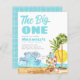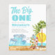 Cute Watercolor The Big One Surf Waves Tropical Beach 1st Birthday Invitation