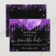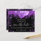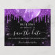 A girly and trendy Save the Date card for a 18th (or any age) birthday party. A black background decorated with purple faux glitter drips, sparkles, and balloons. Personalise and add a date and name/age. The text: Save the Date is written with a large trendy hand lettered style script.