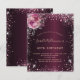 For an elegant 40th (or any age) birthday party. A burgundy faux metallic looking background colour. Decorated with pink faux glitter dust and florals. Personalise and add a name, age and party details. The name is written with a hand lettered style script