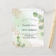 For an elegant 50th (or any age) birthday party. A golden watercolored background decorated with eucalyptus greenery and faux gold glitter dust. Personalise and a name and party details. Black and golden coloured letters.