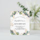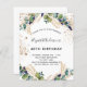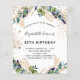 For a 40th (or any age) birthday party. A white background decorated with eucalyptus greenery and golden leaves.Decorated with golden glitter dots. Personalise and add your names and wedding details. Black and golden coloured letters.