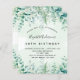 A trendy invitation for a 40th (or any age) birthday party, enchanted forest theme. A green watercolored background with ferns and eucalyptus greenery. The name is written with a modern hand lettered style script. Personalise and add your party details.