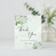 A modern, stylish and glamourous thank you note for a woman's 40th (or any age) birthday. A watercolored green background with faux silver glitter dust and white florals and greenery. Thank you is written with a large modern black hand lettered style script. Personalise and add a name, age and your thank you note.