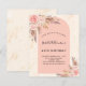 For a modern, elegant 40th (or any age) birthday party. An arch frame and rose gold marble print as background. Decorated with rose gold and pink florals, roses and pampas grass. Personalise and add a name and details.