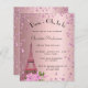 A modern, stylish and glamourous invitation for a 18th (or any age) birthday party, parisian theme. A blush pink metallic looking background with pink sparkling hearts and the Eiffel tower with some flowers. The name is written with a modern hand lettered style script. Personalise and add your party details.