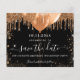 A girly and trendy Save the Date card for a 18th (or any age) birthday party. A classic black background decorated with faux gold glitter and balloons. Personalize and add a date and name/age. The text: Save the Date is written with a large trendy hand lettered style script.