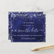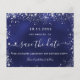 A girly and trendy Save the Date card for a 21st (or any age) birthday party. A navy blue uneven colored background. Decorated with faux silver glitter dust. The text: Save the Date is written with a large trendy hand lettered style script.