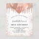 For an elegant 18th (or any age) birthday party. A white background. Decorated with rose gold, faux glitter drips, paint dripping look and balloons. Personalise and add a name, age and party details. The name is written with a hand lettered style script