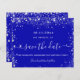 A girly and trendy Save the Date card for a 21st (or any age) birthday party. A royal blue uneven coloured background. Decorated with faux silver glitter dust and a tiara, crown. The text: Save the Date is written with a large trendy hand lettered style script.