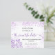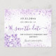 A girly and trendy Save the Date card for a 18th (or any age) birthday party. A stylish white background decorated with violet, lavender coloured faux glitter dust and a dress. Personalise and add a date and name/age. Black and violet coloured letters. The text: Save the Date is written with a large trendy hand lettered style script.
