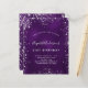 A modern, stylish and glamourous invitation for a 21st (or any age) birthday party. A deep purple coloured background with faux silver glitter dust. The purple colour is uneven. The name is written with a modern hand lettered style script. Personalise and add your party details.