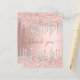 A feminine and elegant thank you card. A rose gold, pink faux metallic looking background colour. With rose gold and faux silver glitter drips, paint dripping look. On front large dark rose gold coloured hand lettered script and the text: Thank You.