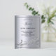 A trendy, modern 50th birthday party invitation card. A faux silver metallic looking background, with a frame and music notes, black coloured letters. Personalise and add a name and party information.