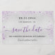 A girly and trendy Save the Date card for a 40th (or any age) birthday party. A modern faux silver metallic looking background decorated with purple faux glitter dust. Personalise and add a date and name/age 40. Black and purple coloured letters. The text: Save the Date is written with a large trendy hand lettered style script.
