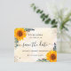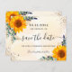 A trendy Save the Date for a 40th (or any age) birthday party. A stylish white background decorated with eucalyptus greenery, sunflowers, golden foliage and faux gold glitter dust. Personalise and add a date, name and text. The text: Save the Date is written with a large trendy hand lettered style script with swashes.
