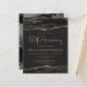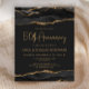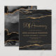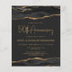 This elegant 50th anniversary party invitation features a top and bottom border of black watercolor agate geode with faux gold glitter highlights. The words "50th Anniversary" appear in sparkly gold faux foil in decorative modern handwriting font. Customize it with the names of the guests of honor and the party details in gold-colored text on a dark off-black background. A matching black and gold agate image appears on the reverse side.