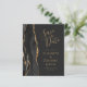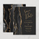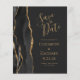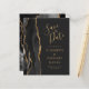 The left-hand edge of this elegant modern wedding save the date card features a black watercolor agate border trimmed with faux gold glitter. The customizable text combines gold colored handwriting, copperplate and italic fonts on an off-black background. The reverse side features a matching black and gold agate design. NOTE: Envelopes are not automatically included with these budget invitations, so please remember to choose the "blank white envelopes" option!