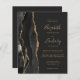 The left-hand edge of this elegant modern wedding invitation features a black watercolor agate border trimmed with faux gold glitter. The customisable text combines gold coloured handwriting, copperplate and italic fonts on an off-black background. The back is solid off-black. NOTE: Envelopes are not automatically included with these budget invitations, so please remember to choose the "white envelopes" option!