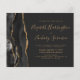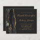 The left-hand edge of this elegant modern wedding invitation features a black watercolor agate border trimmed with faux gold glitter. The customizable text combines gold colored handwriting, copperplate and italic fonts on an off-black background. The back is solid off-black. NOTE: Envelopes are not automatically included with these budget invitations, so please remember to choose the "white envelopes" option!