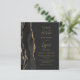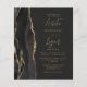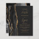 The left-hand edge of this elegant modern wedding invitation features a black watercolor agate border trimmed with faux gold glitter. The customisable text combines gold-coloured script and sans serif fonts on a slate black background. The reverse side features a matching black and gold agate design.