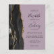 The left-hand edge of this elegant modern wedding invitation features a black watercolor agate border trimmed with faux gold glitter. The customisable text combines black handwriting, copperplate and italic fonts on a mauve background. The reverse side features a matching black and gold agate design. NOTE: Envelopes are not automatically included with these budget invitations, so please remember to choose the "white envelopes" option!