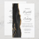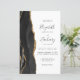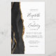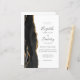 The left-hand edge of this elegant modern wedding invitation features a black watercolor agate border trimmed with faux gold glitter. The customisable text combines handwriting, copperplate and italic fonts in charcoal grey on a white background. Add additional details on the back, along with a QR code to help your guests visit your wedding website.