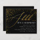 Budget Black & Gold Confetti Script Surprise Party Invitations. Shhh... It's a surprise! Celebrate your surprise birthday party with these stylish invitations featuring faux gold foil confetti and script against a black background. Your details appear in elegant serif typography.