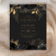 An elegant botanical design featuring black floral borders at the top and bottom, trimmed with gold faux foil and glitter leaves, framing the classic gold-coloured text on a dark background. A matching floral design appears on the back of the card.