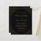 This elegant vintage-inspired formal wedding invitation features the text in gold-coloured script and serif fonts on a black background, framed by a delicate vintage gold vine motif. The frame is repeated on the reverse.