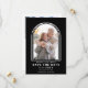 Stylish simple modern chic minimalist monogram black with white Save the Date Flat Card is ideal for black and white elegant weddings. The double arch represents two persons becoming one in their life together. This design includes two photos, one on each side and has your wedding website address and qr code on the back side. You can easily personalise this template online with our easy online customisation tool.